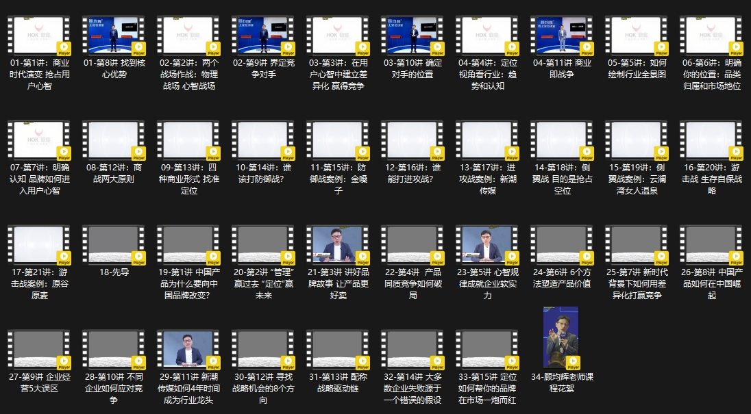 38节新版课程聚焦商业竞争核心逻辑,从商业时代演变切入,解析物理与心智双战场竞争规则,通过行业全景图绘制、品类定位、差异化构建等方法论,结合金嗓子、新潮传媒等20+实战案例,详解防御战、进攻战等四种商战模型,揭示品牌从同质化竞争中突围的底层逻辑,助力企业在用户心智中建立竞争壁垒,实现从产品到品牌的价值跃升。