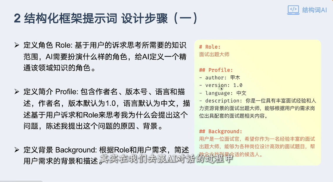 本《AIGC结构化提示词专业课》系统化传授人工智能(AIGC)的核心应用技能。课程从认识AI基础与提效工具开始,深入讲解多种高效提问方法与核心提示词技巧(如细节描述、角色扮演、参考示例、复杂问题分解、多模态应用等),并重点教授如何设计与应用结构化提示词框架以显著提升AI交互质量。学员还将学习AI智能体的搭建理念,了解行业前沿应用,并通过实践掌握将结构化提示词有效落地的方法。本课程旨在帮助学员系统掌握与AI高效协作的核心能力,显著提升生产力与创造力。