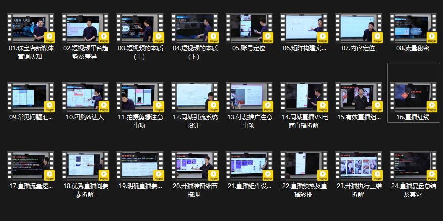 课程聚焦抖音短视频与直播实战,紧密贴合平台规则并持续迭代。从新媒体平台趋势差异、短视频本质讲起,深入账号定位、矩阵构建、内容定位等。通过真实案例拆解与体系化训练,助你零基础上手,快速掌握引流技巧,高效获取客资,提升转化率,实现珠宝店业绩持续突破 。
